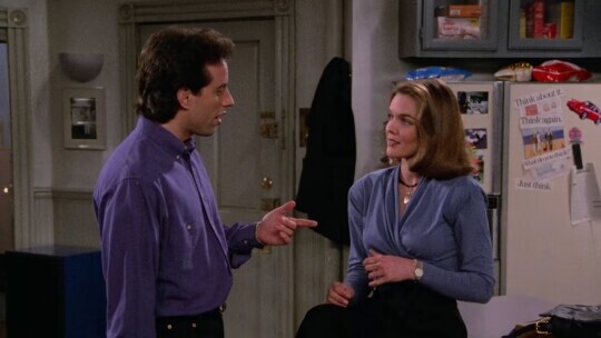 The episode also gave us a story about how Jerry can’t remember his new girlfriend’s name, his only clue being that it “rhymes with a part of the female anatomy.” After workshopping possible names with George, including “Hest” and “Bovary,” in the final moments of the show, Jerry's date confronts him and forces him to take a big swing-and-a-miss at it.