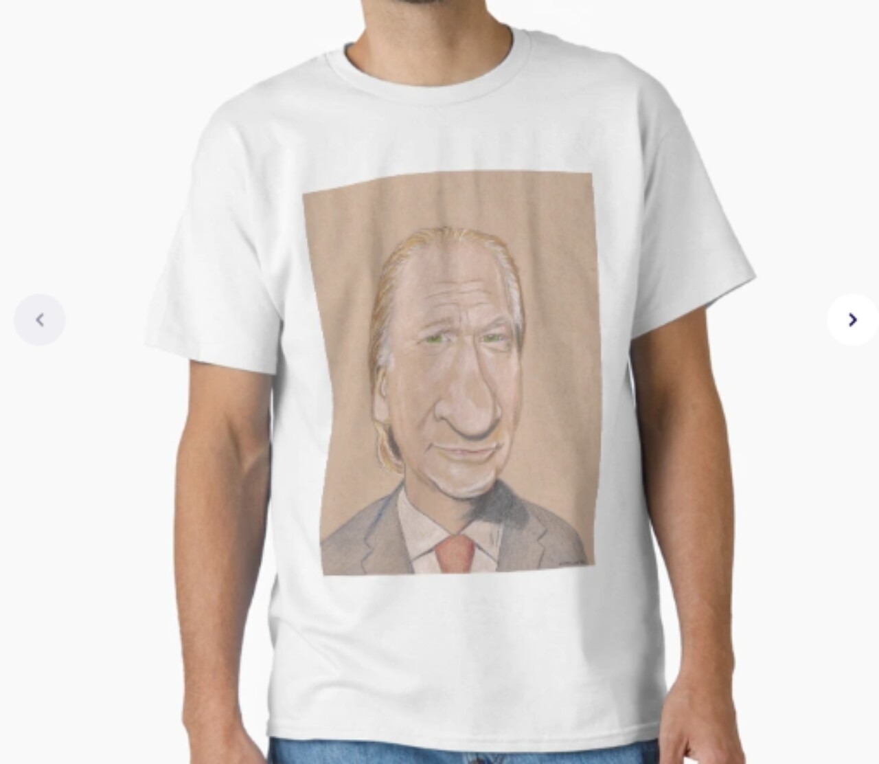 This $23.99 entry is for the more artsy-fartsy Maher fans, and it almost makes him appear more modest and self-deprecating than we know him to be. Hopefully, the real Maher and his regularly shaped head can take a joke, seeing as he's probably not taking any royalties from this caricature t-shirt.