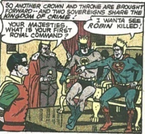 Of course, you shouldn't expect The Gipper to appear, but it's a fair wager that the Feds will ask Superman to detain Batman, then the Caped Crusader will use his lucre to build a Kryptonite pervert suit. (That, or this new Batman is a wizard. Everybody forgets that Superman's other weakness is magic.)