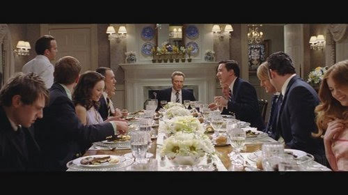 Hollywood adores taking big ol' expository dumps around King Arthur's Round Table, where characters talk and share telling glances, but never once touch the lavish courses sitting just a few inches from their perfectly made-up faces. Here's a meal from Wedding Crashers that will remain in pristine condition throughout the scene: