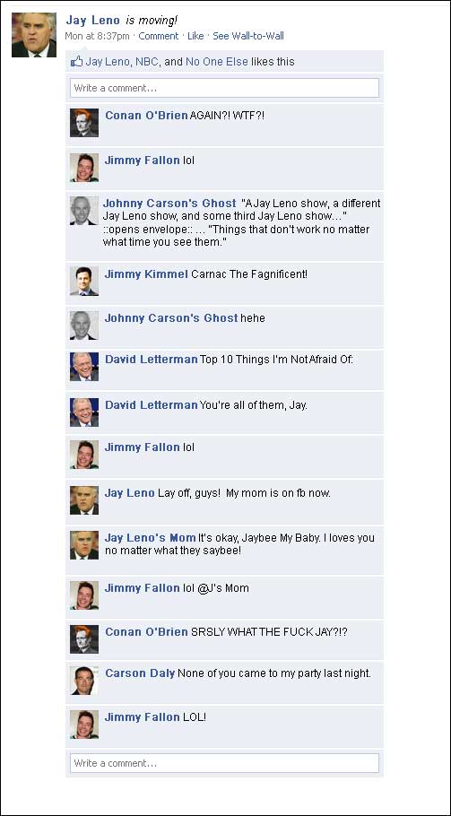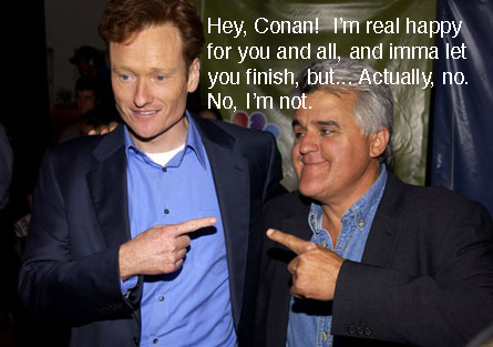 I only thought of one joke for me:Instead of all this bickering, Conan and Leno should join forces and make a procedural cop drama called “The Chin And The Hair.” They’d fight crime with jokes, which would mean that the comic relief would have to be bumbling and not good at telling jokes. The comic relief would be The Chin.
