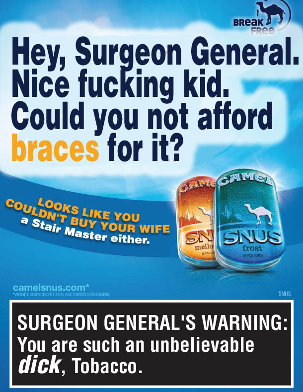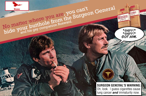 Big Tobacco faces off against the Surgeon General in the ads of the latest issue of Tits for Men.