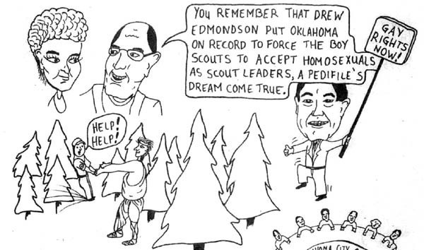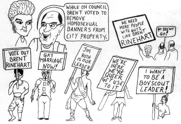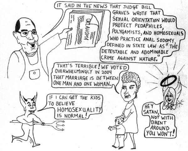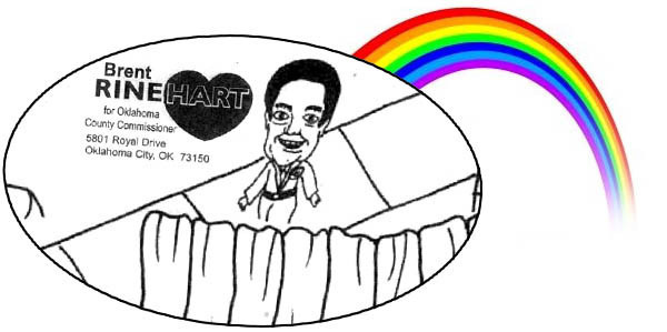 When Brent Rinehart was accused of felonies involving money laundering and fraud, he did the same thing he does every time he finds a pubic hair in his mouth -- he blamed the homosexuals. He tried to clear his name a few years ago by releasing a 16-page comic book that basically said, "Come on, guys. Would a guilty guy hate gay people?" Unfortunately, even in Oklahoma, that logic was lost on most of his county's voters.