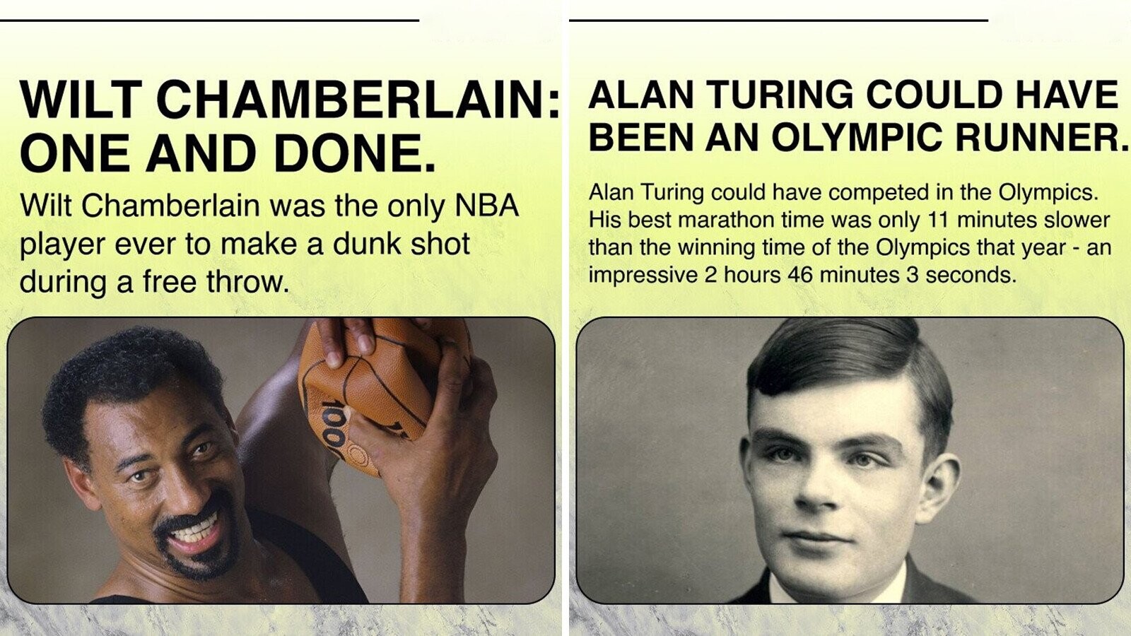 Welcome to the world of the utterly surprising! This list of thirteen pieces of trivia will take you on a journey of discovery and amazement. From Alan Turing's surprising and little-known athletic side, to the first couple to get married on the Titanic, these facts will leave you wondering how you ever managed to live without them.