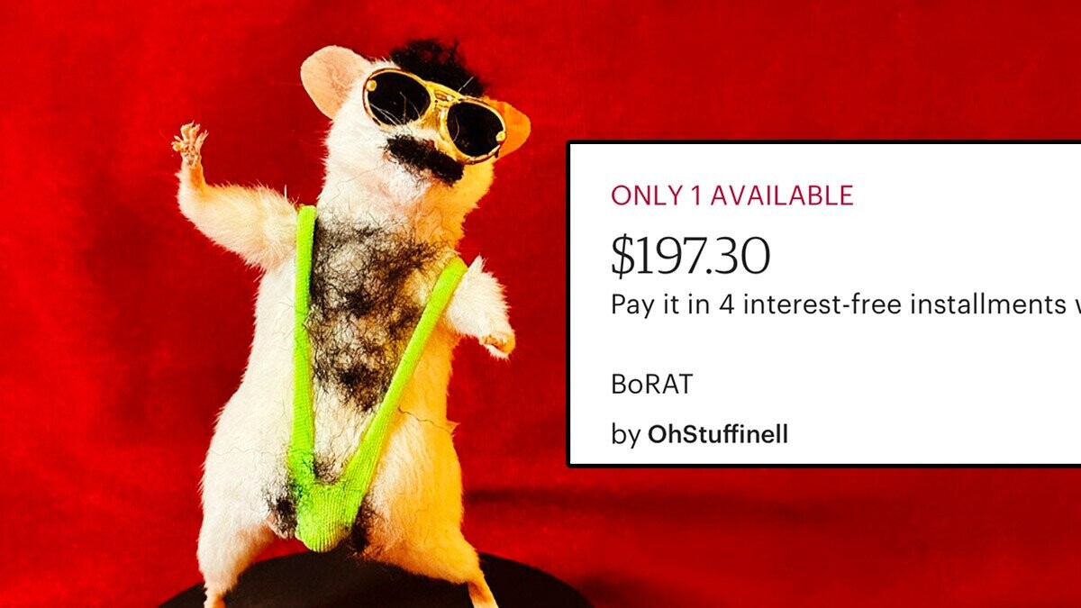 If recreating A Clockwork Orange isn’t your thing, maybe you’re in the market for a taxidermied rodent dressed as Borat (his name is BoRAT, of course).