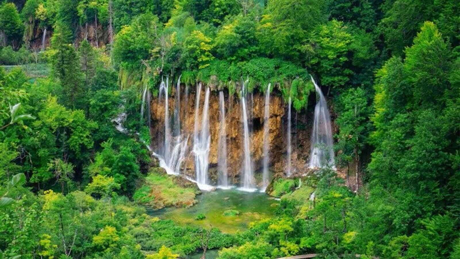 Incredible waterfalls in the middle of the jungle surrounded by bigger trees.