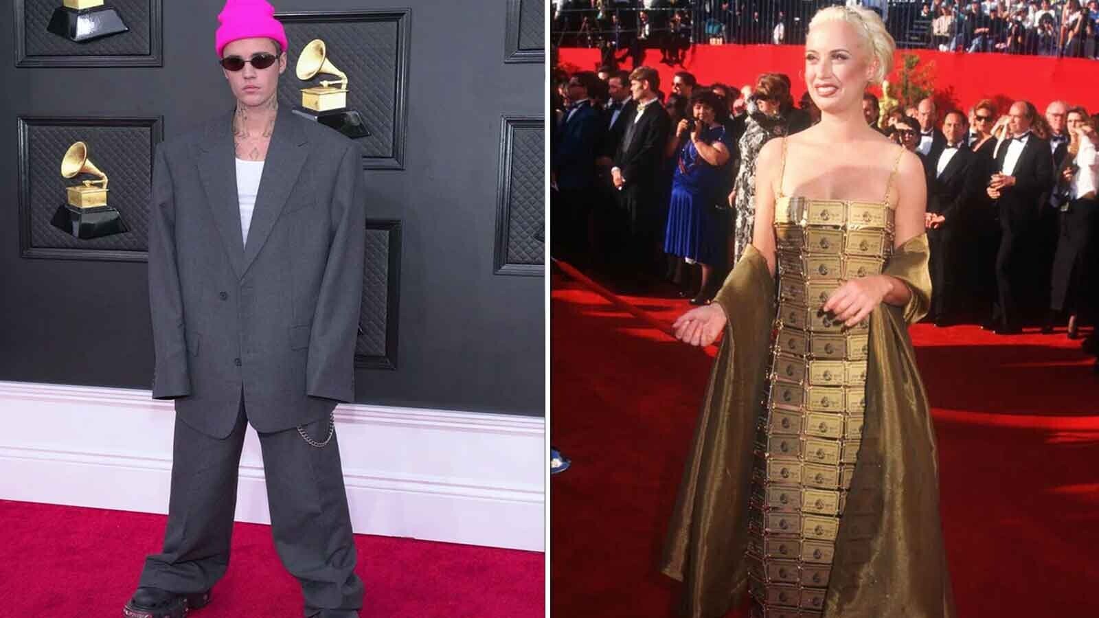 In the following images, you can see absurd outfits like Bad Bunny's coat dress at the Met Gala, singer Avril Lavigne's pop-punk style at the Grammys, and Brad Pitt with a casual look that showed no interest in fashion at an event.