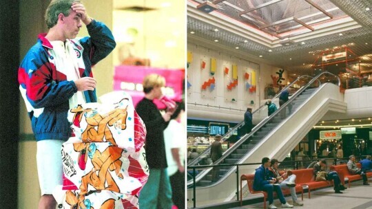 Shopping malls in the 1990s were brightly colored, with a different aesthetic than what we see today. They were places where families and groups of young people would come to stroll, browse shops, enjoy a meal, and even go to the movies.