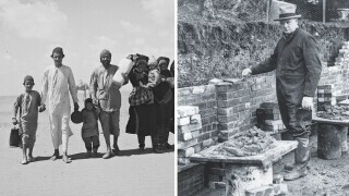 In the following collection of images, you can see a Yemenite Jewish family walking through the desert during Operation Magic Carpet in 1949, or Winston Churchill in 1928 building a cottage at his Chartwell estate, using bricklaying to balance his writing, joking that he produced 200 bricks and 2,000 words a day.