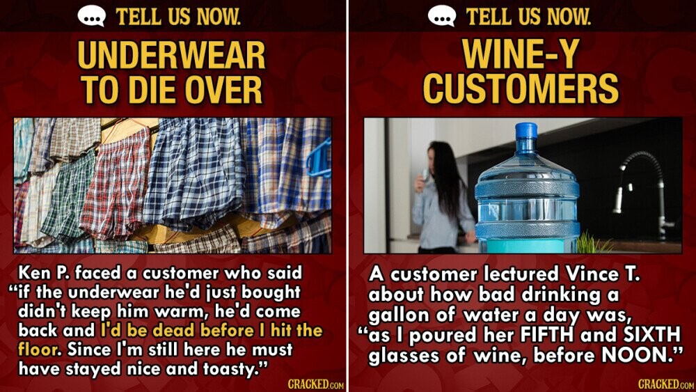 If you've ever worked in the service industry, you've probably met the pettiest of humanity. Customers can be petty to downright cruel, but you're expected to assist them while smiling. On Facebook, we asked Cracked readers, "What was your worst customer experience?" Some of them were terrifying, but we've compiled a list of the most entertaining ones for you to enjoy. Scroll down and discover what’s inside…
