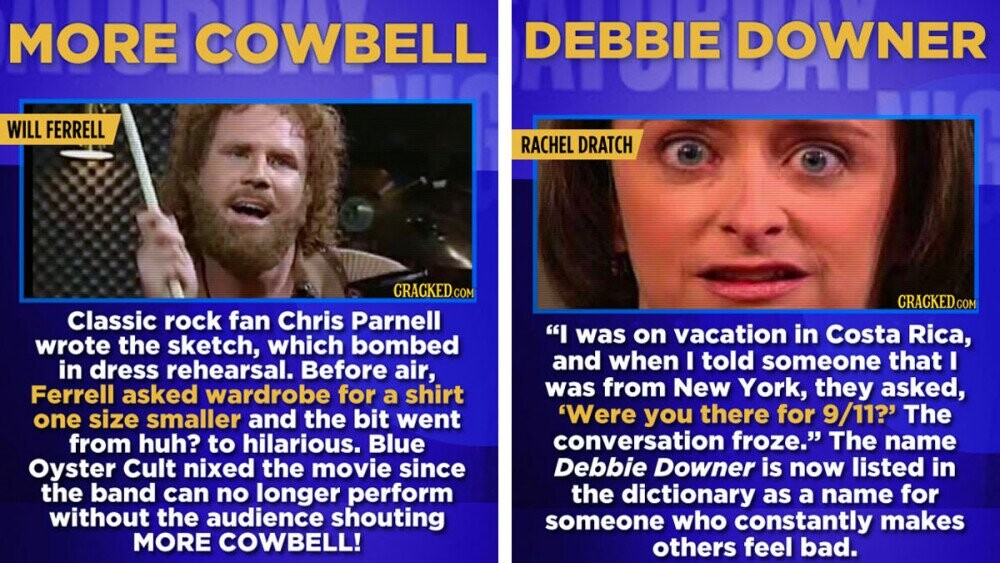 And look, we're big SNL fans here at Cracked, but we're not going to pretend they haven't had their ups and downs. That's the nature of doing a weekly sketch show for 47 seasons and counting. But man, when they strike that gold, they strike that gold. SNL is behind some of the funniest, most culturally zeitgeist-capturing moments in comedy history. We're here to celebrate those characters. And while it may look effortless on screen, the backstory to a lot of our favorite, most quotable characters are insanely fascinating. Whether it's a weird childhood haircut or a last-minute wardrobe change at dress rehearsal, some of our favorites come from wild places.