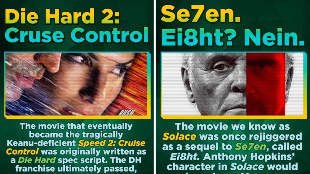 There have been several great films that were originally conceived as sequels to other popular movies. However, due to a falling out, a change in the script, or some other reason, the sequel was altered to become its own thing, with mixed results. Without Rocky IV, there would be no Predator. Without Die Hard, Speed 2 wouldn't have had a script. Forget it, Jake, without Chinatown there would be no Who Framed Roger Rabbit?!