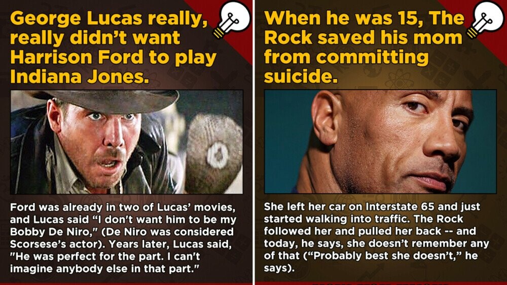 George Lucas didn't like Harrison Ford in either Star Wars or Indiana Jones at first, so, uh... maybe some of the most important aspects of those franchises happened by chance? Here's the full story (along with 12 others) for you to consider: