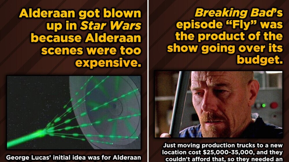 With need comes innovation and creativity, and several great films have churned out some great scenes, story points, and characters due to the reality that the filmmakers just ran out of money. Brilliant jokes and scenes are done because something broke on set. Sometimes a whole fictional planet gets destroyed in a movie because they couldn’t afford to shoot scenes on it. Even the iconic way zombies move in horror movies was done in the name of saving money.