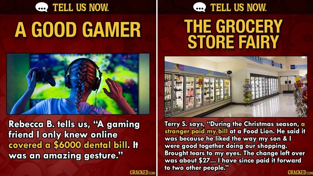 It's always nice when a stranger does something kind. Whether it's holding the door open for you, returning your lost wallet, or just making conversation, these small moments can make your day. Sometimes the world is a terrible and cruel place. But we decided to fight against our pessimistic tendencies and ask Cracked readers on Facebook, “What's the kindest thing a stranger has done for you?” We've never been so excited to read the comments before. Some humans are good, after all! Read 17 touching tales of strangers being nice below…