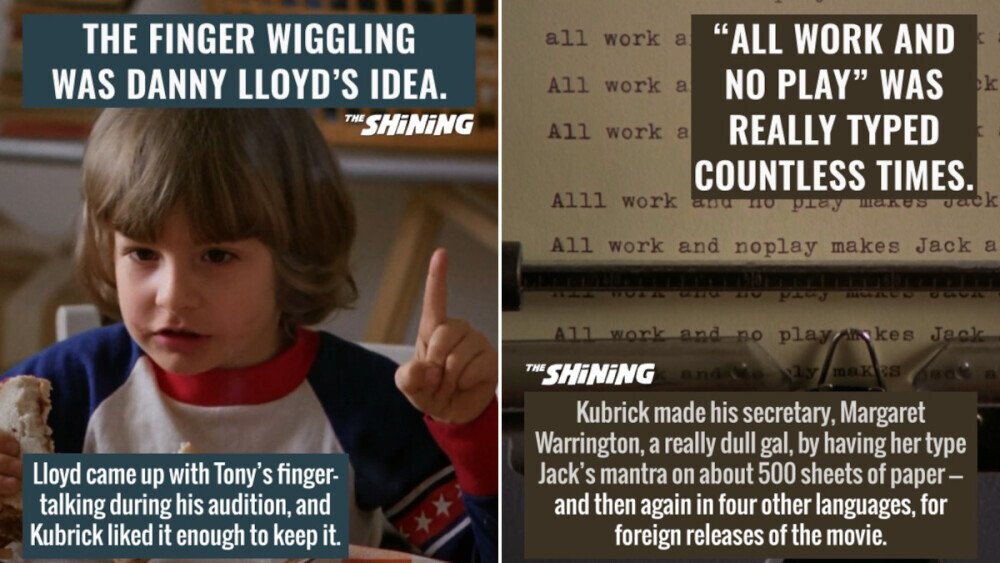 The Shining is the movie that taught us, a long time ago, how maddening it can be to be locked in a place for months on end. Today, to celebrate the 40-and-a-bit-th anniversary of its release, we're bringing you a collection of behind-the-scenes facts for you to enjoy in the safety of your home, hopefully away from any ambiguous ghosts, cryptic happenings, or door-scribbling children.