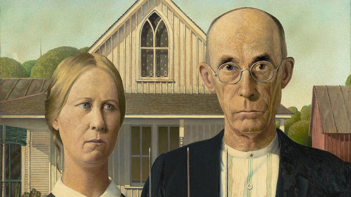 The “American Gothic” couple are not husband and wife.