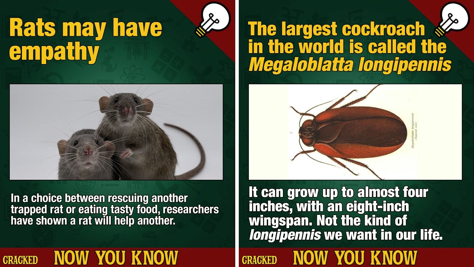 If you’re not a millionaire, we bet you’ll have to live with at least one of these in your life. And, not to brag, but with our headquarters based in Brooklyn, we at Cracked have become something of pest and rodents experts. We have (separately) lived with an array of pests. It’s all terrible, but we feel especially empathetic to those of you dealing with bedbug or rat infestations. May the bites be light and all the pesticides be with you in your time of need.