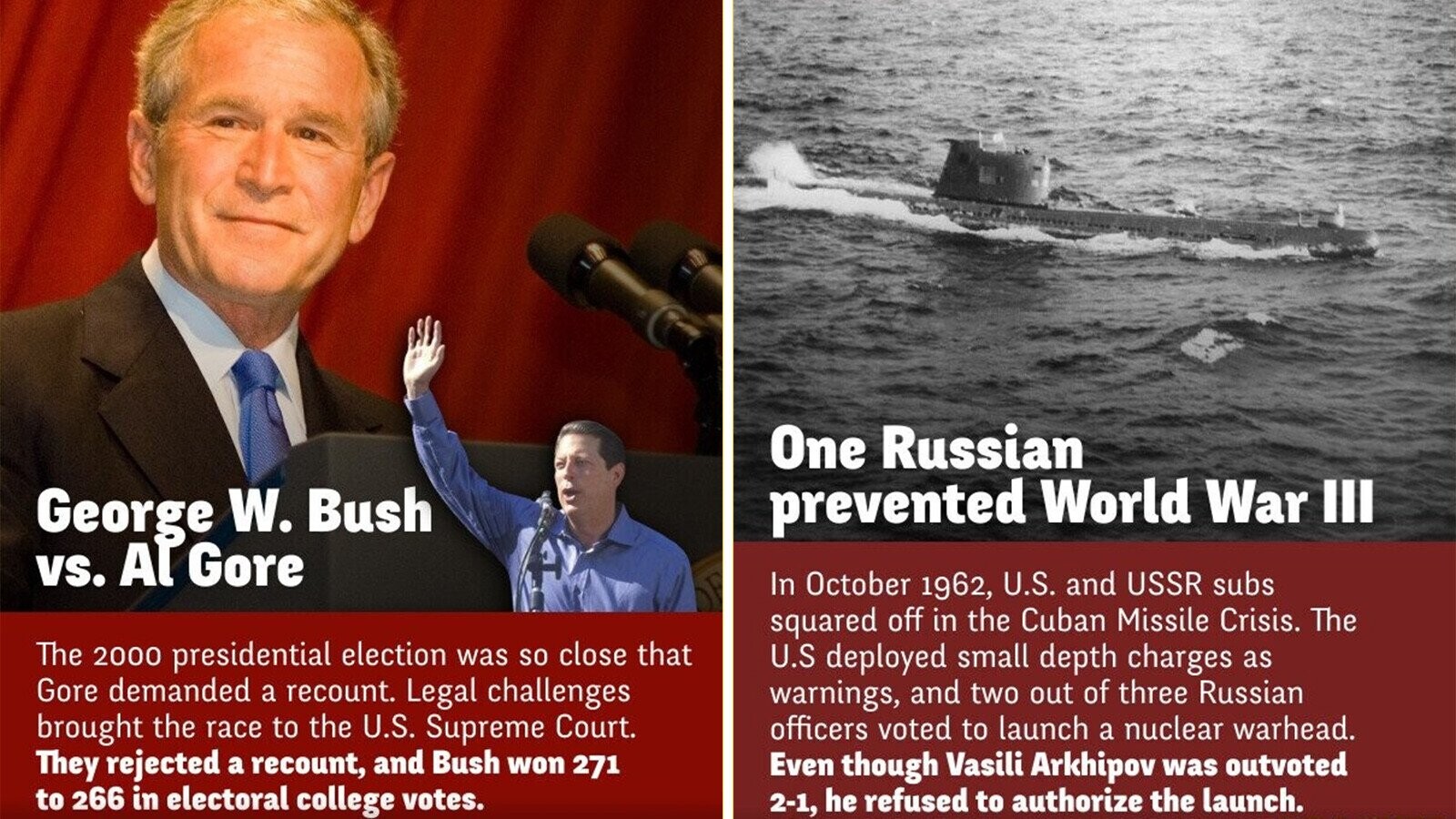 It’s amazing what one decision from one person can have on the rest of us. We go about our day, typing up words about historic close calls, but little do we know that in some bunker hundreds of feet below the Earth, decisions are being made. Even when we can vote on a decision, the collective outcome may or may not be what we were hoping for. Let this list be a reminder to us all… Our one vote does matter. Because sometimes, that’s all it takes. Here are 12 things decided by an extremely thin margin.