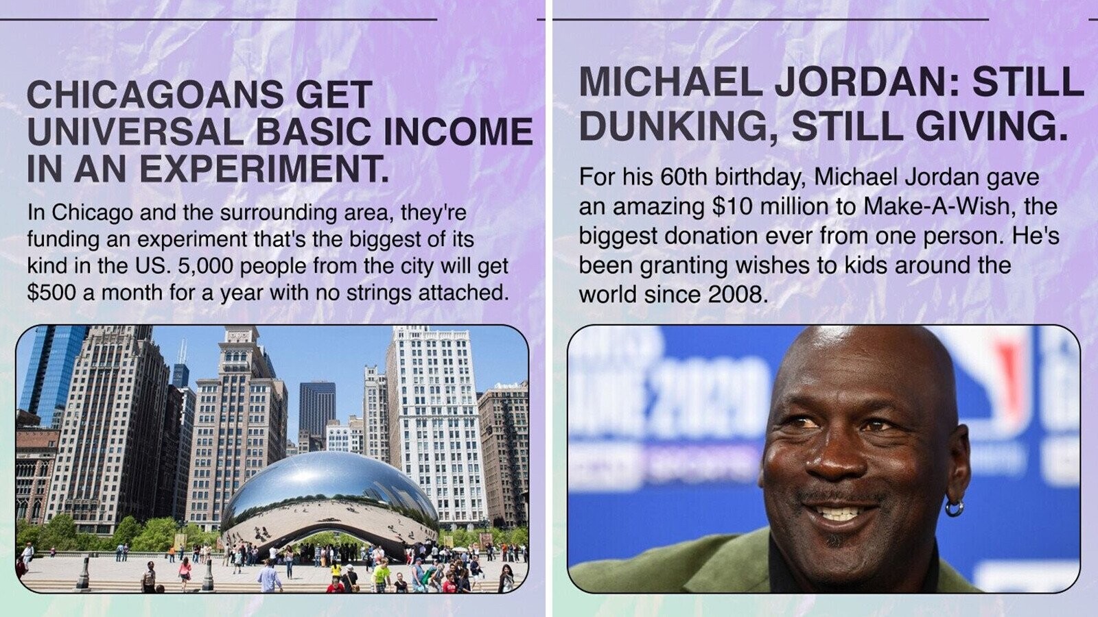 Let's take a look at some of the most interesting developments of the past few months. We've got a Universal Basic Income experiment in Chicago, a revolutionary gene therapy helping a 19-month-old in the UK, a chance for prior offenders to join the legal marijuana business in New Jersey, a Powerball winner donating every penny of his winnings to charity, and a TikTok video giving a family restaurant a much-needed boost. It's been an incredible few months, and it looks like the future is only getting brighter. So sit back, relax, and enjoy the ride!