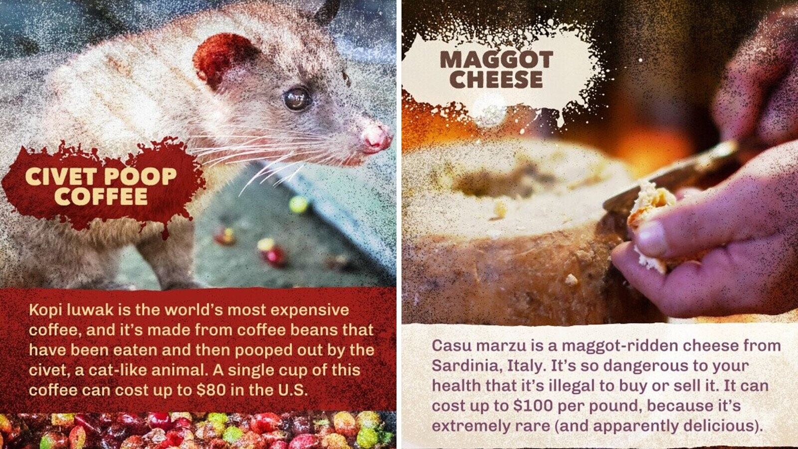 Welcome to the world of the weird and the wonderful, where the disgusting and the outrageous can be worth an absolutely amazing amount of money. From civet poop to whale poop, from horseshoe crab blood to sea silk, from cheese to coffee, from bull semen to scorpion venom, from horse semen to bears in bear bile farms, from totoaba bladders to lorises in the illegal wildlife trade - all of these things have one thing in common: they are worth an incredible amount of money.