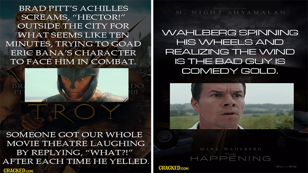Hollywood usually takes itself pretty seriously. Amazingly, that's often when it's at its most hilarious. When some director sets up what they're sure is either a tearjerking or thought-provoking moment, and it's either so mawkish or so awkward that it's impossible to take seriously -- that's comedy gold.