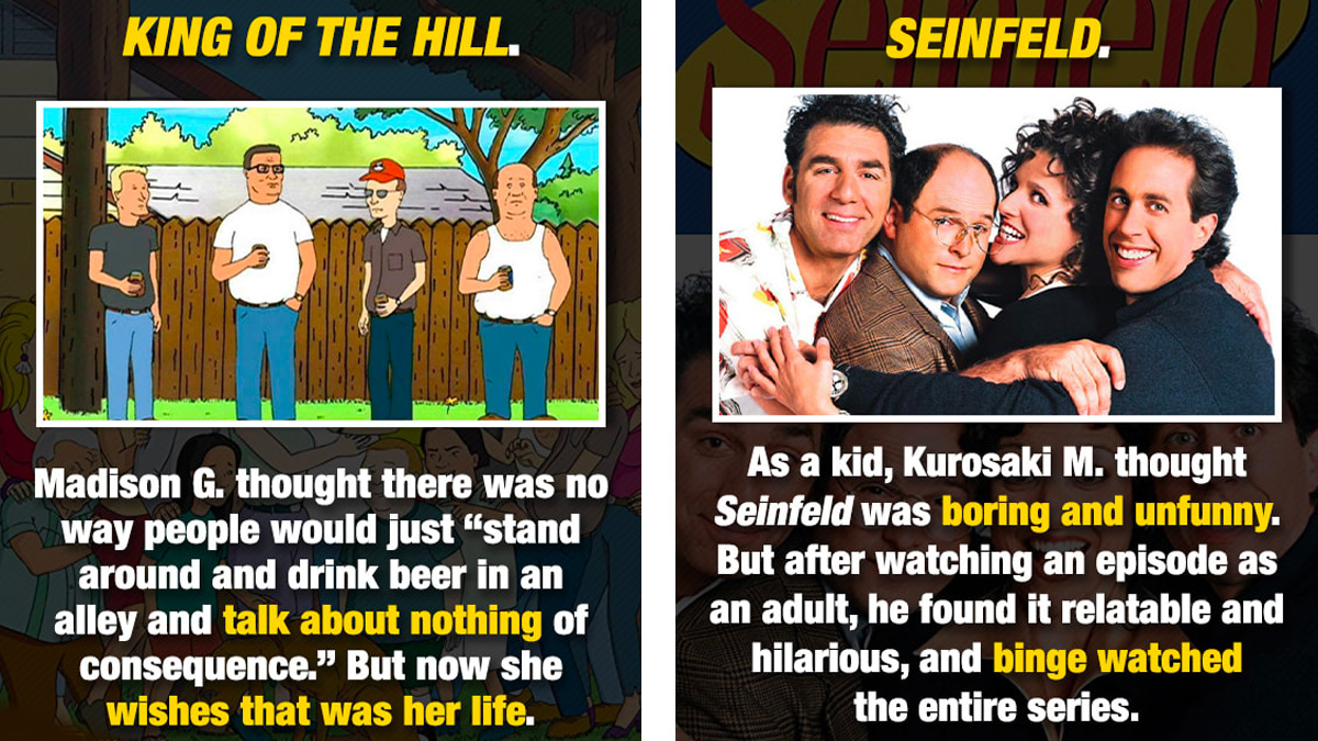 Have you ever watched a show or movie and thought "This is terrible, how can anyone actually enjoy this garbage?" But then gave it a second chance and it all finally clicked? We asked Cracked fans on Facebook if they had any shows they used to find too ridiculous to enjoy, and here are a few shows that got better with age: