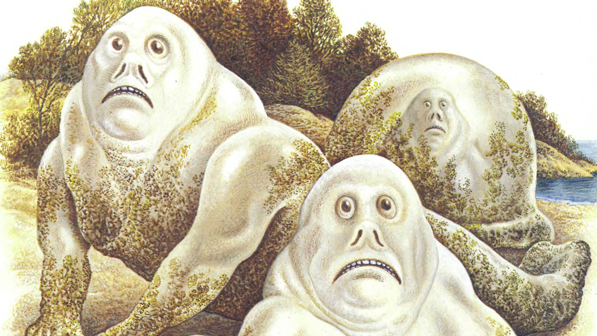 The central premise of the totally gonzo book is this: in this particular future hellscape, man will have dipped into his own DNA to genetically engineer humanoid horrors that perform specialized labor. These big dumb beasts outlive us when humans trash the environment, and inherit the Earth. (Also, we evolve telepathy, so hooray?) Here's how some of our creations turn out after 5 million years or so. Enjoy!