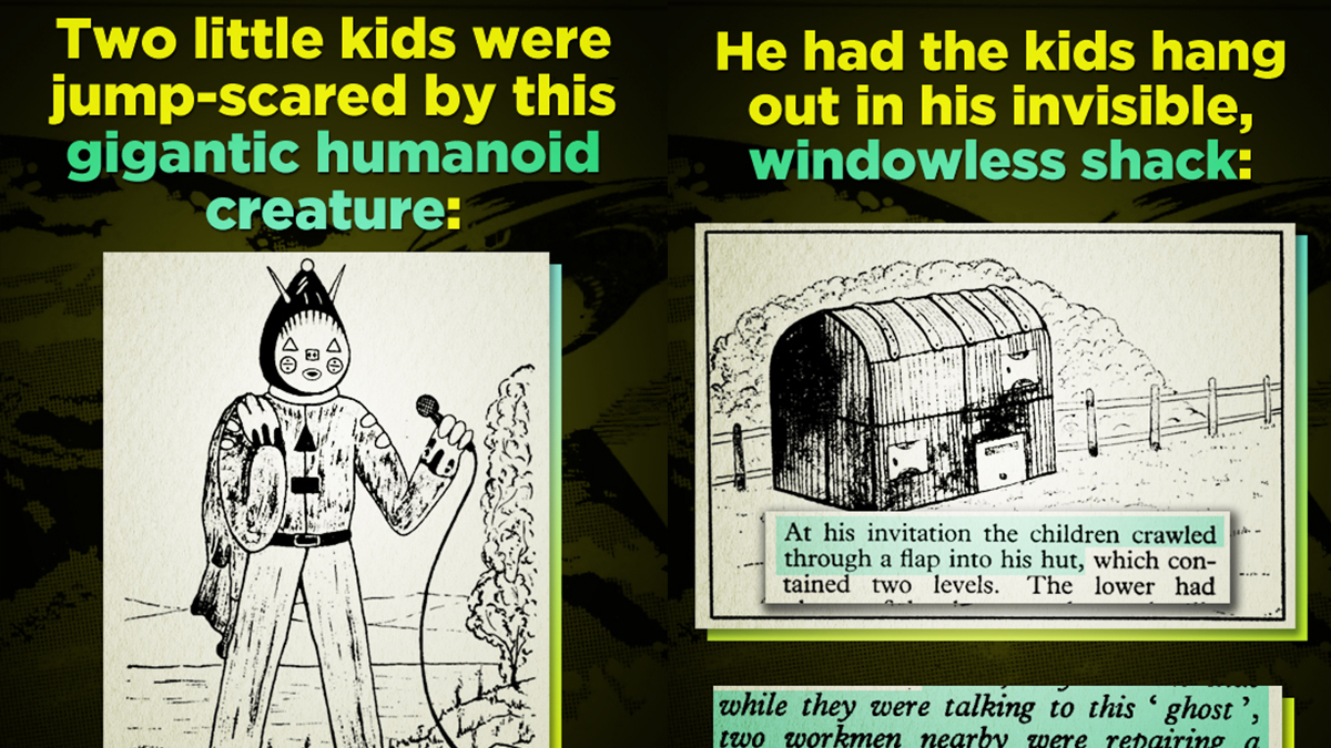 The creature appeared to be wearing a stiff wooden suit, and communicated via some kind of janky Speak & Spell. It only gets weirder from there: