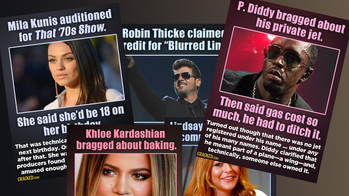 We're about to drop a bombshell on you: Famous people lie. It's shocking, we know. What with all their upstanding behavior, goodwill toward those of lesser means, and never-ending tendency to show us their genitals, we understand that this might be a tough pill to swallow. But it happens. And here you'll see some pretty serious stuff that most people seem to have forgotten about.