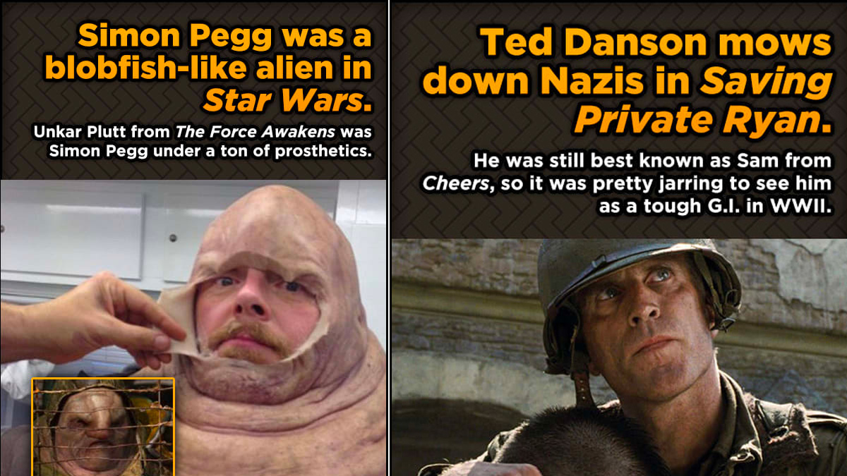 Actors appear in tiny, uncredited roles all the time. And sometimes, they appear in bigger roles but are hidden under tons of makeup. Either way, you might have no idea you’ve actually watched them in a movie. Allow us to point out 15 times when that might have happened.