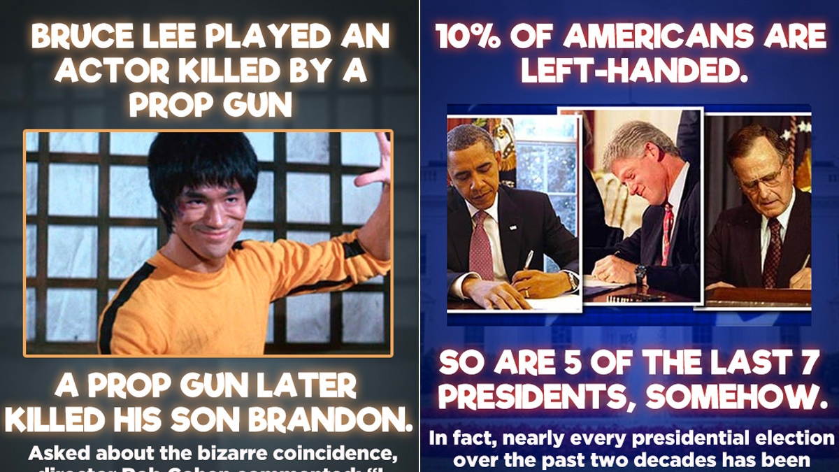 Look, we're not going to play to that whole "Illuminati control the world" hubbub that crazy people get on about. But come on, there's not supposed to be some sort of mind-blowing connection between disparate people. And yet it happens all the time -- coincidences that seem like they were written by a third-rate screenwriter for basic cable.