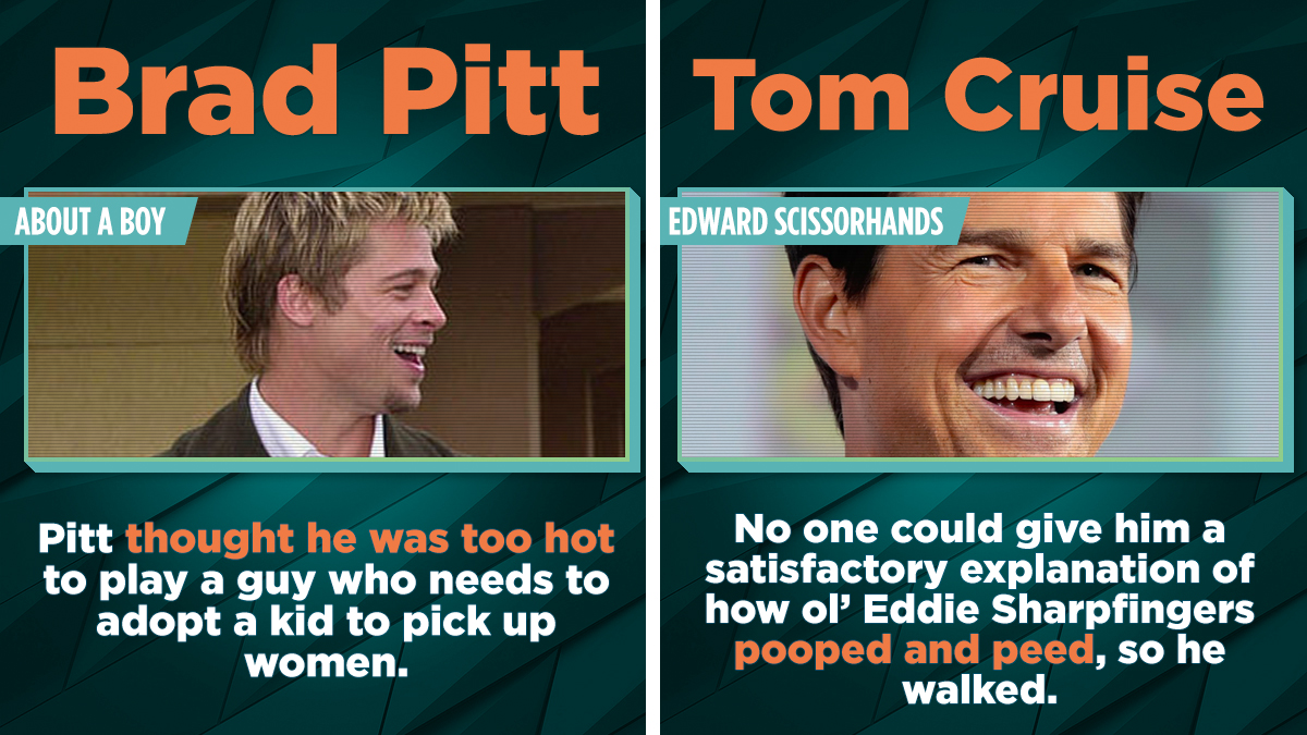 It's no secret that actors can be tough to deal with. Small, seemingly random things can set them off and throw months of negotiations down the drain. Some think they're literally too hot to be there, some think they're literally not hot enough to be there, and still others are afraid of being upstaged by their costars (even if those costars are inanimate objects). We even have an example of an actor turning down a role because no one would tell him how his character poops and pees.