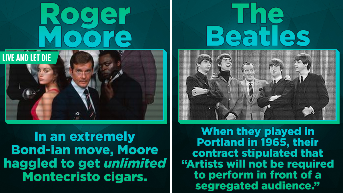 It's something of a cliche at this point to wonder what celebs have in their tour riders. Sure, we've all heard a “pop star wants the blue M&Ms taken out” or “rock stars wants the snow mixed directly with the Jack Daniel's” joke before. Here the thing though: there's a little kernel of truth behind every cliche. And honestly? Performing is hard work. You can't just waltz out of your trailer and become Blade without a little mental prep. Whatever a performer's process is, whatever helps them get the job done, well, that's just the (weirdly specific) price of admission, baby!