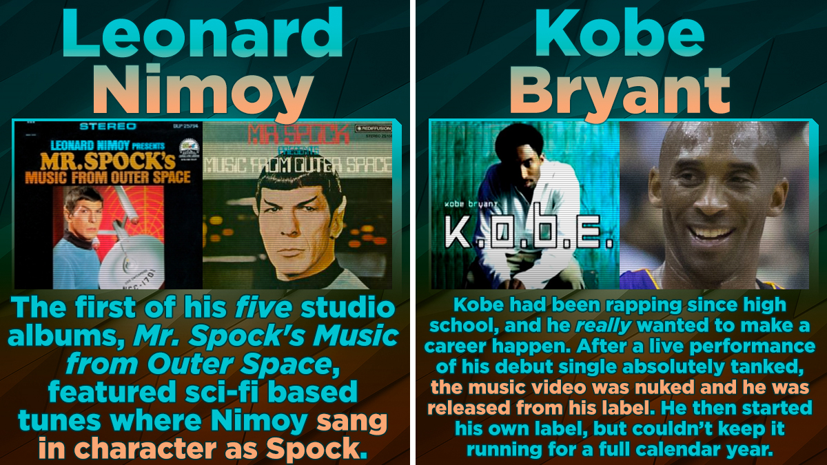 They say you should never turn your hobby into your career. So maybe it's a good thing that Ryan Gosling never hit it big with his spook-rock band, William Shatner's spoken-word poetry career never took off, and Scar Jo never became a pioneer of the Tom Waits cover band industry.