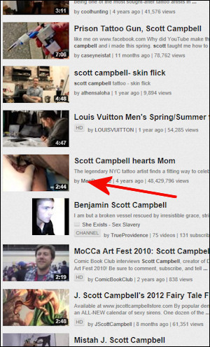A guy doing a tattoo. There is no shocking twist ending, no hot girl or celebrity shows up. This is a mystery, because everything else on YouTube's most popular list is there for a reason -- you may have no interest in Justin Bieber, but we have nothing against the people who do. But to put this random video's number in perspective, more people watched it than bought tickets to the final Harry Potter movie. It also beats Top Gun, Transformers and Terminator 2. It has more views than most Britney Spears videos. So, why? Well, if we look at the comment section, we see the same thing over and over: